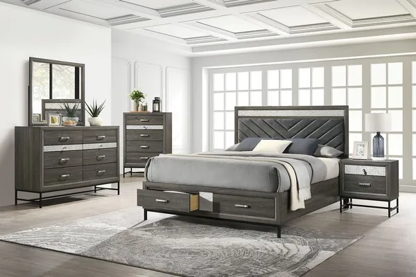 Voleta Gray Upholstered Storage Platform Bedroom Set