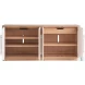 - 76" Credenza features white sand finished door fronts, 1 pull out tray behind right doors with gray felt lined silver tray, 3 adjustable wood shelves, power supply strip behind left doors, wire access through back panel and interior side panels, sand dune finished case