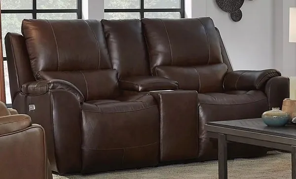 Westchester Palermo Chocolate Power Reclining Console Loveseat with Power Headrest