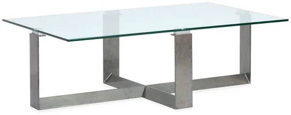 Whitehall Aged Pewter and Chrome Pucks Rectangular Glass Top Cocktail Table