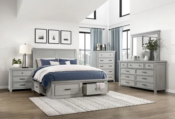 Willowbrook Light Gray King Platform Bed with Footboard Storage