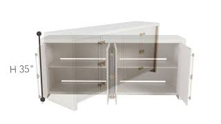 The Winford Cabinet showcases a contemporary waterfall design and stylish acrylic handles. A cerused white finish and gold metal accents modernize this 80” media cabinet. The piece’s back panel offers access ports for electronic cables, making it ideal for hiding wires.Features