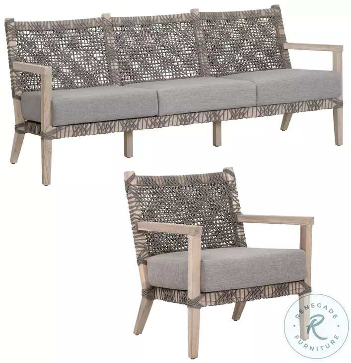 Costa Dove Flat Rope And Gray Teak Performance Fabric Outdoor 77" Conversation Set