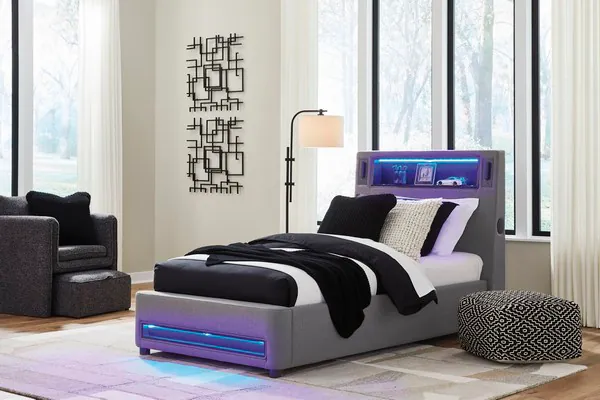 Wronske Gray Twin Upholstered Panel Bed with LED
