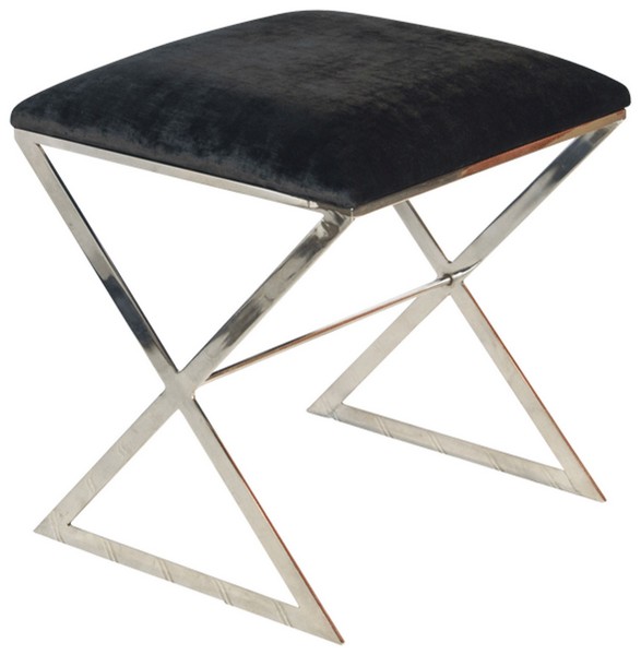 X-Side-Nub Black Velvet And Nickel X Side Stool