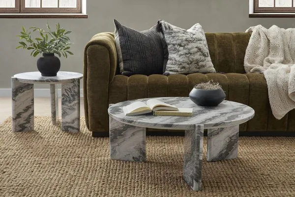 Zora Charcoal Gray Round Marble Top Coffee Table