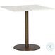 Inspired by Art Deco design, this 30" square bistro table from the Zyrah collection combines timeless elegance with modern appeal. The solid Carrara marble top pairs beautifully with an antique bronze steel base, making it a perfect choice for restaurants or smaller dining spaces. Available in a 24" square and 35" round top as well. As marble is a natural material, unique veining, pitting, fissures, micro-cracks, and color variations only enhance the distinctive beauty of each piece.Features